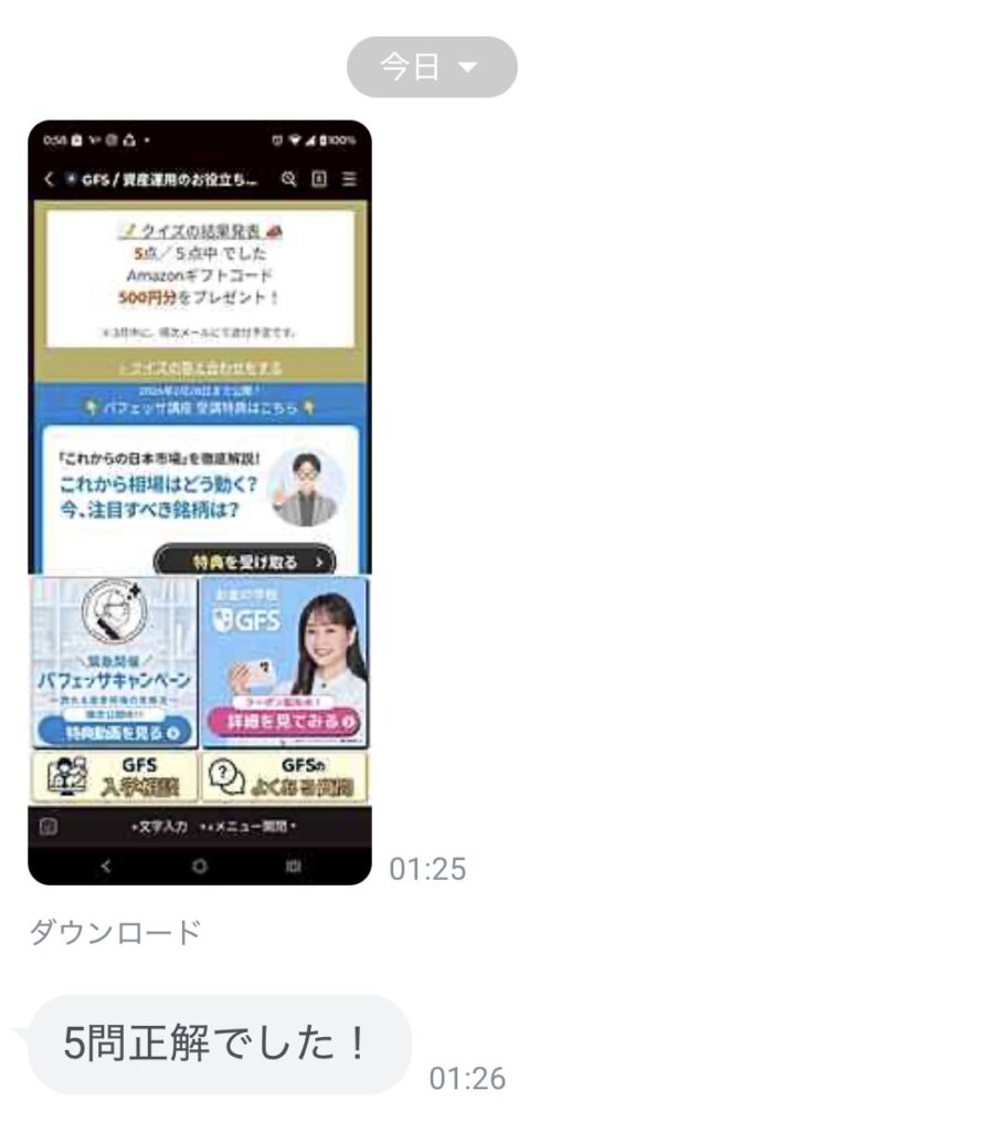 アマギフのもらえる金額はクイズの正解数によって変わるけど、5問すべて正解すると500円分がもらえます💓