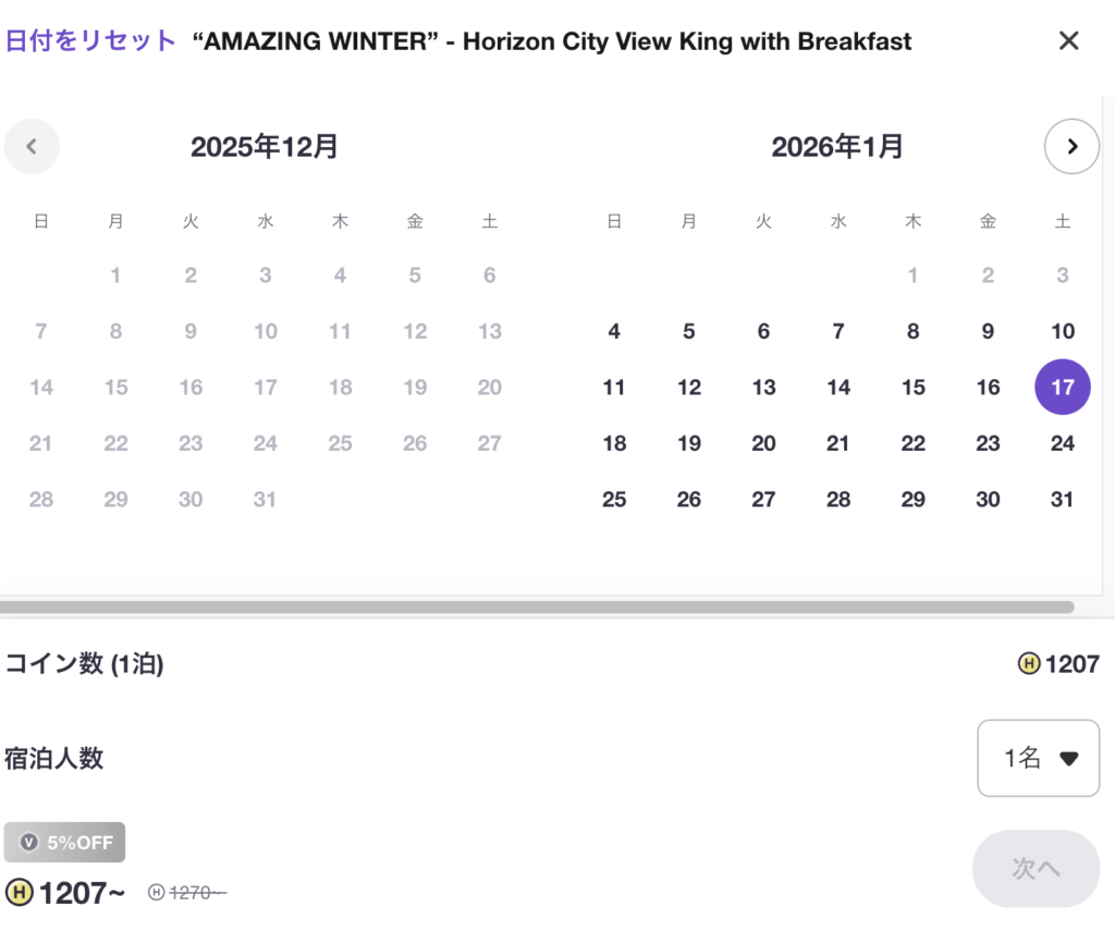 でもHafHはコイン基準なので、同じ宿なら基本的に必要コイン数は一定であることも多いです。。