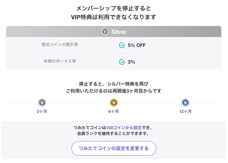 あとは、休会するとVIP特典が適用されなくなるので、その点も注意が必要です。